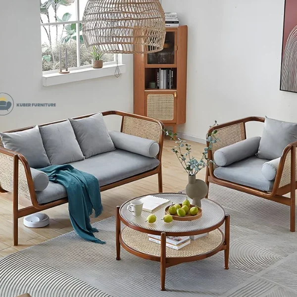Nordic Charm Solid Wood Sofa Set in Grey Upholstery
