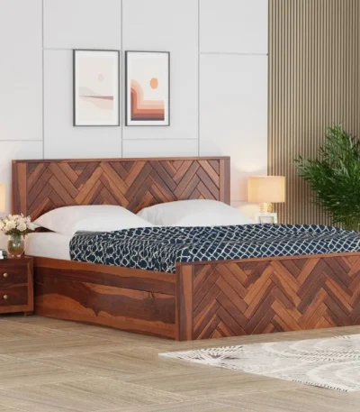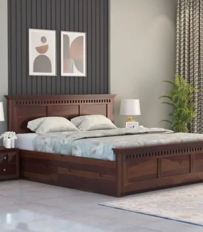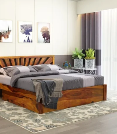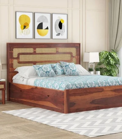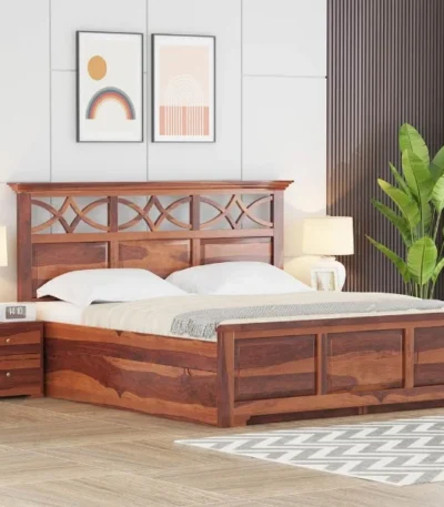 Wana Sheesham Wood King-Queen Size Bed with Hydraulic Storage