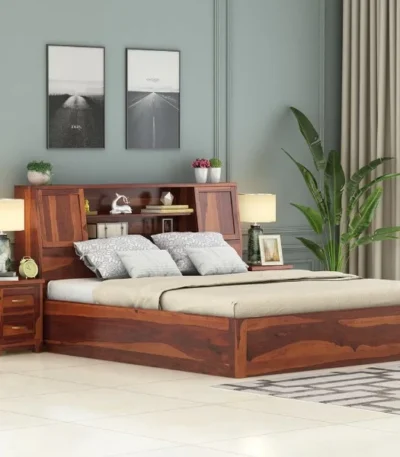 Lesy Sheesham Wood King-Queen Size Bed with Storage