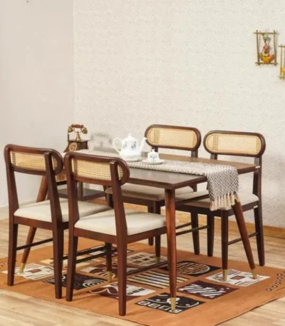 Boston Solid Wood Rattan Cane Dining Table Four Seater Set