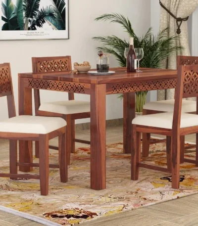 Bee Teak Wood 6 Seater Dining Table Set