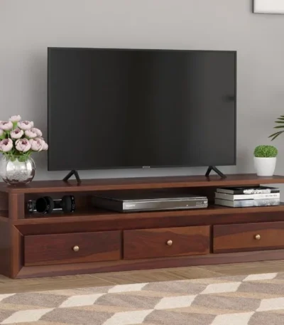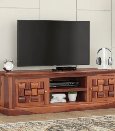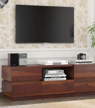 Melvina Sheesham Wood Tv Unit with Cupboards Drawers and Shelve Storage