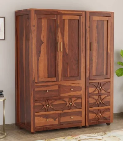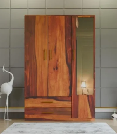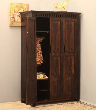 3 Door Solid Sheesham Wood Wardrobe