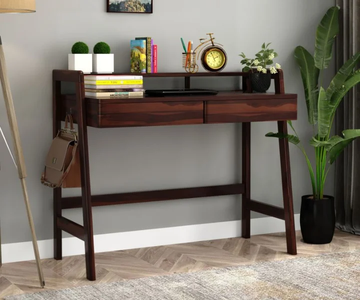 2. Aurelia is crafted from solid wood, which can be identified with the grained pattern over the surface of this wooden study table.