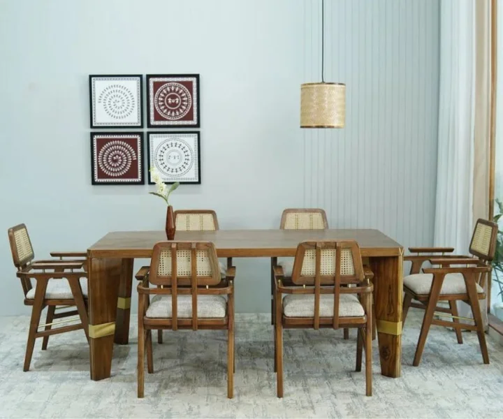 Chinchilla Teak Wood 6 seater Dining Table Set