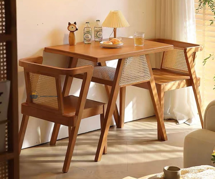 The Elegant Wooden Dining Table Set Perfect for Contemporary Living Spaces is the perfect solution for small spaces, featuring a compact design that includes a sturdy table and two stylish chairs that can conveniently be tucked underneath when not in use. This dining set seamlessly blends functionality with modern aesthetics. Ideal for kitchens, dining areas, or cozy nooks, the Elegant Dining Set offers a practical yet chic dining solution that maximizes space without sacrificing style. Enjoy meals in comfort and sophistication with this versatile addition to your home.