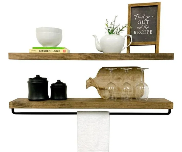 1. Facing the clutter issues in your home? Clean it up with Keller wall shelves designed in the floating style. This unit has a curved and intricately detailed border to give a traditional feel in your home interiors. Two supporters make this floating block more sturdy and stable.
