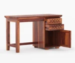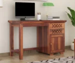 2. Lockies is crafted from solid wood, which can be identified with the grained pattern over the surface of this wooden study table.