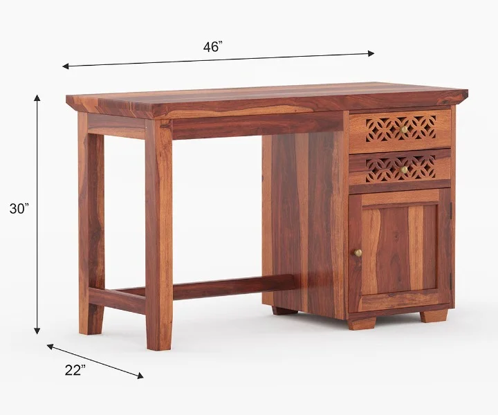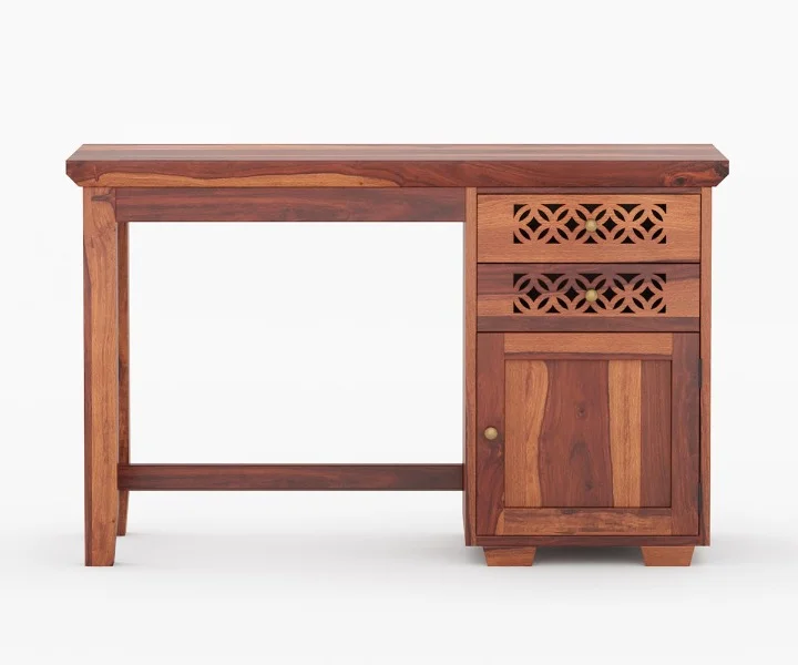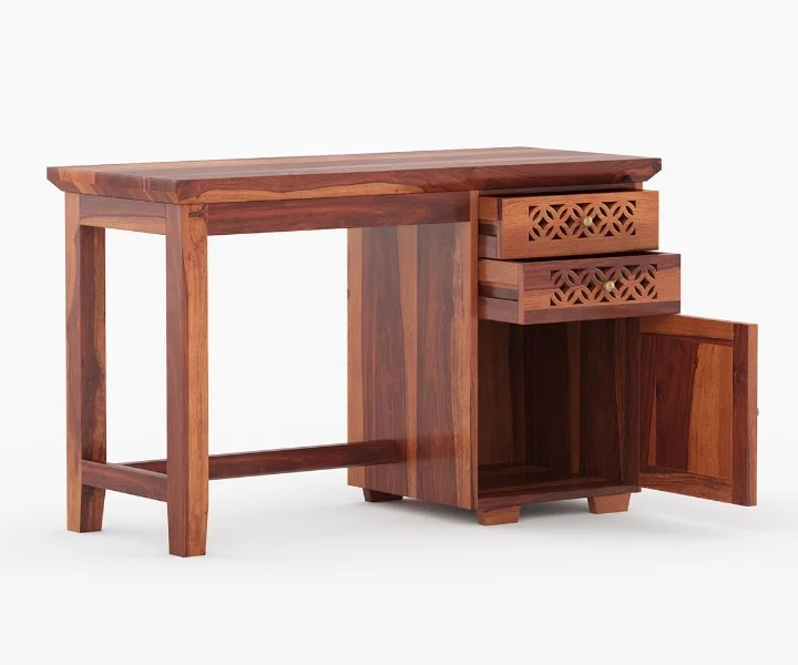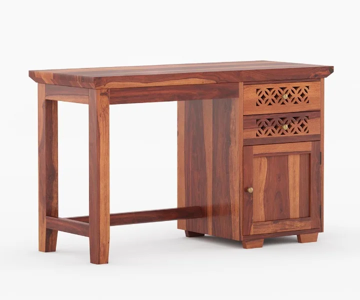 2. Lockies is crafted from solid wood, which can be identified with the grained pattern over the surface of this wooden study table.