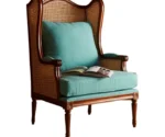 A lounge chair that seamlessly blends natural aesthetics with practical comfort, featuring a sturdy rattan frame and plush cushioned seating.