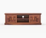 1. Miller TV unit is designed in such a way that it encompasses five drawers of equal dimension and one open shelf to place the set-top box in the midsection.