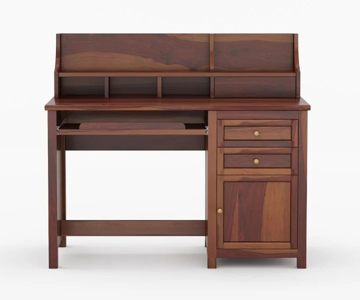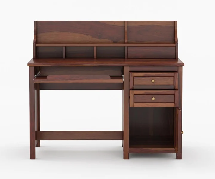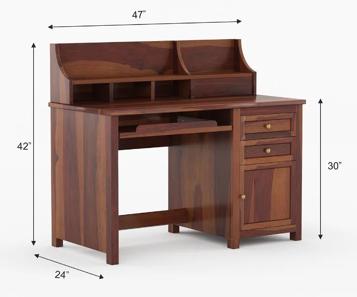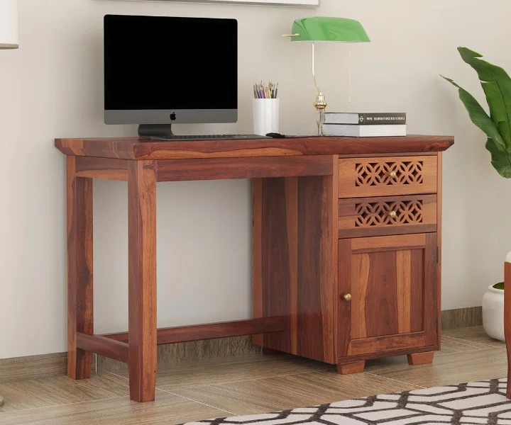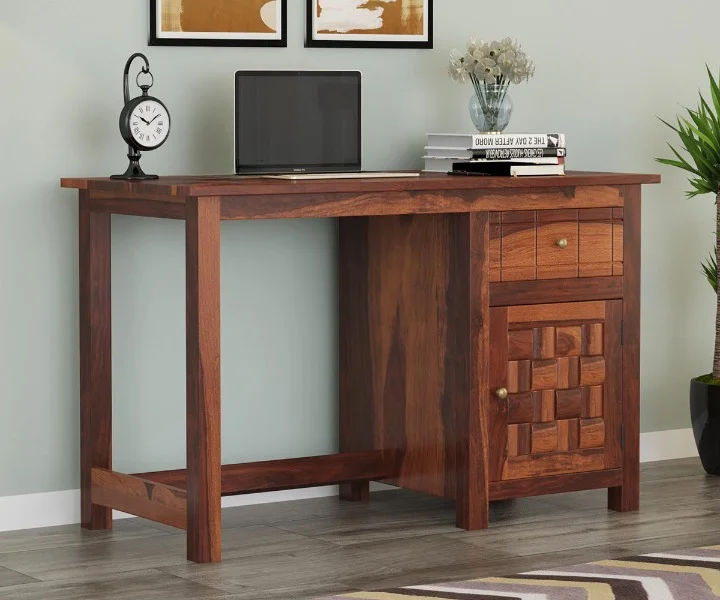 2. Nettle is crafted from solid wood, which can be identified with the grained pattern over the surface of this wooden study table.