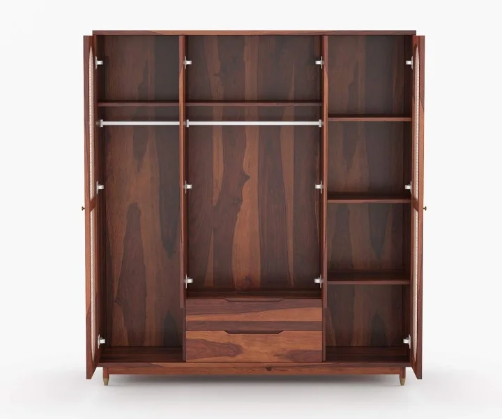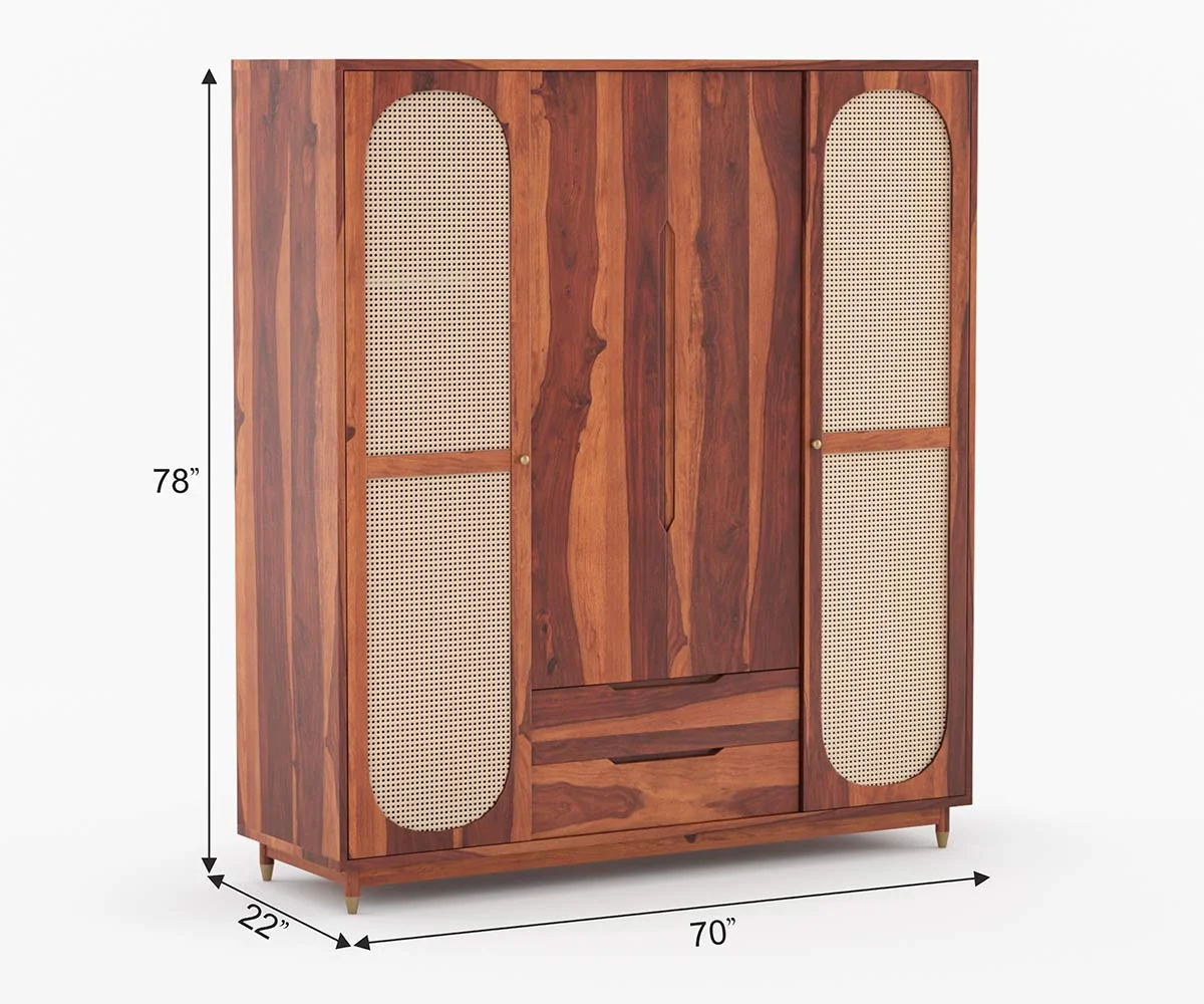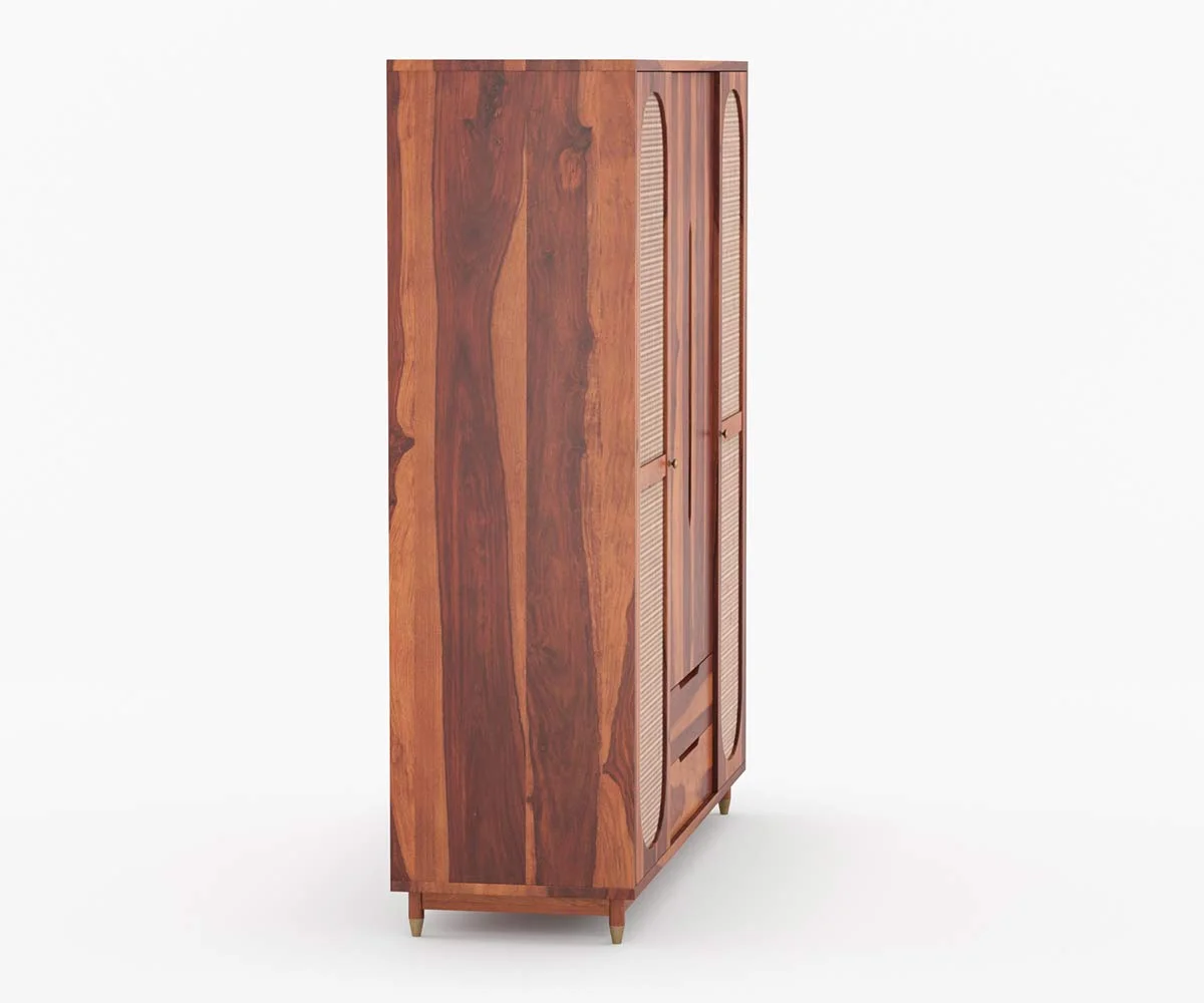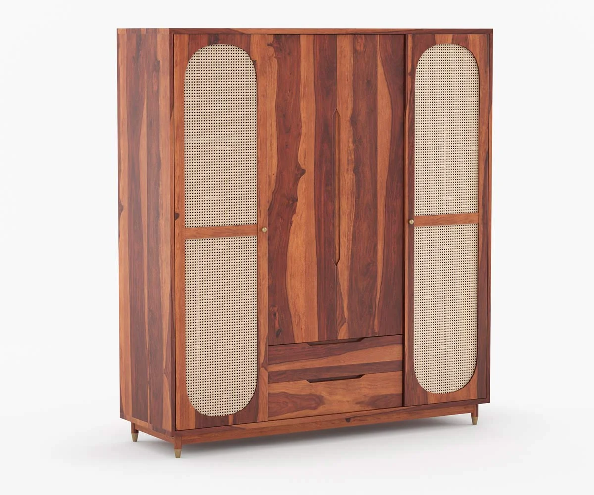 1. Nylah is a furniture design inspired with the African texture. It is a Three door wardrobe with Moroccan patterns embossed upon each of the doors. It has shelves and drawers of different sizes segmented within the furniture.