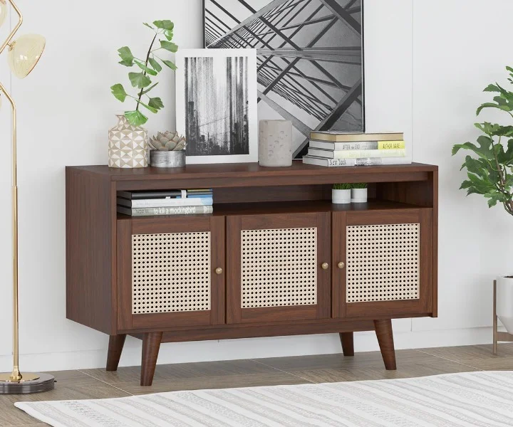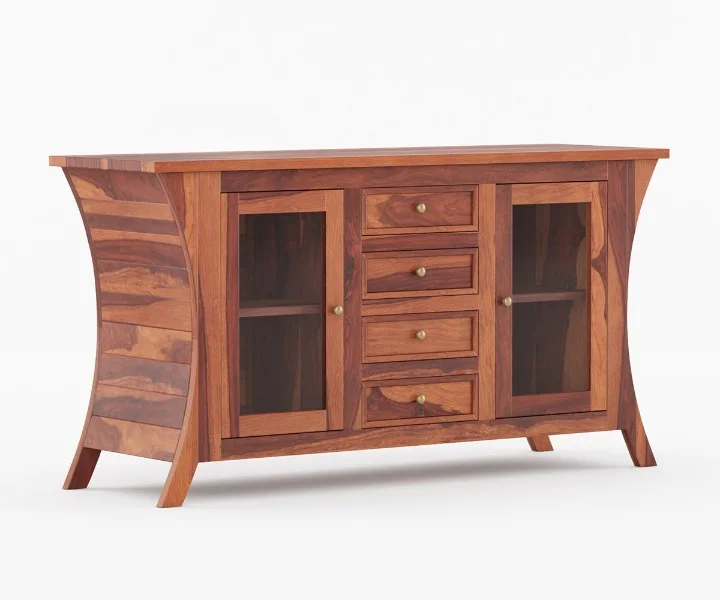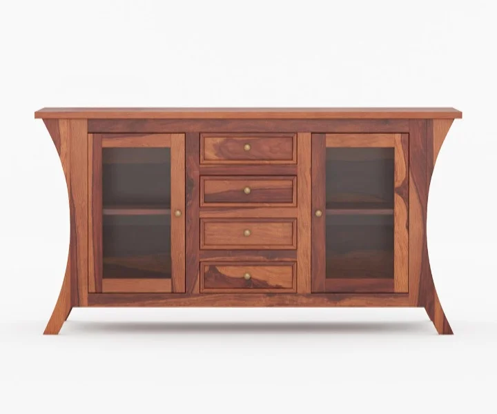 1. Reveka Sideboard is an epitome of classy and modern look. It has two curio display cabinets and capacious drawers for sufficient storage. Furthermore, this sideboard unit has tapered legs which adds more elegance to your living space décor.