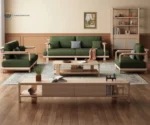 This elegant living room set is a perfect blend of minimalist modern design and timeless wooden craftsmanship. Constructed from high-quality ash wood, the frame showcases a smooth, natural finish that enhances the grain and texture of the wood. The sleek armrests, wide seat bases, and firm structure offer both durability and clean aesthetics.
