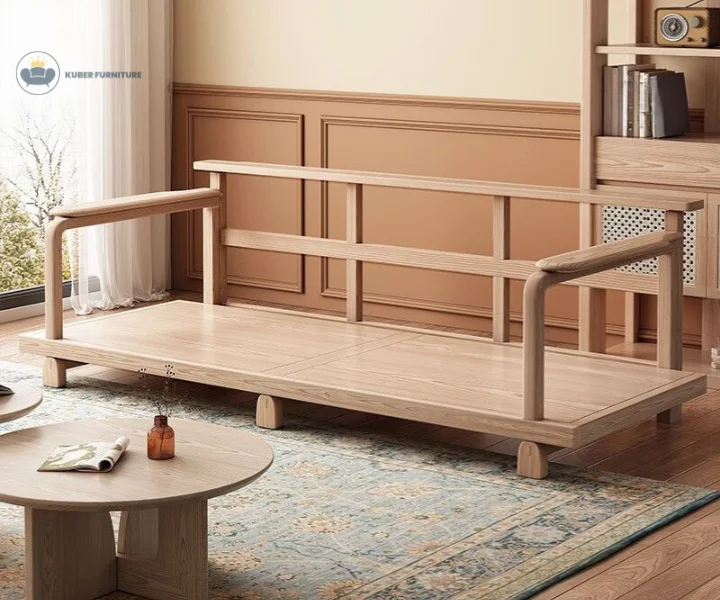 This elegant living room set is a perfect blend of minimalist modern design and timeless wooden craftsmanship. Constructed from high-quality ash wood, the frame showcases a smooth, natural finish that enhances the grain and texture of the wood. The sleek armrests, wide seat bases, and firm structure offer both durability and clean aesthetics.