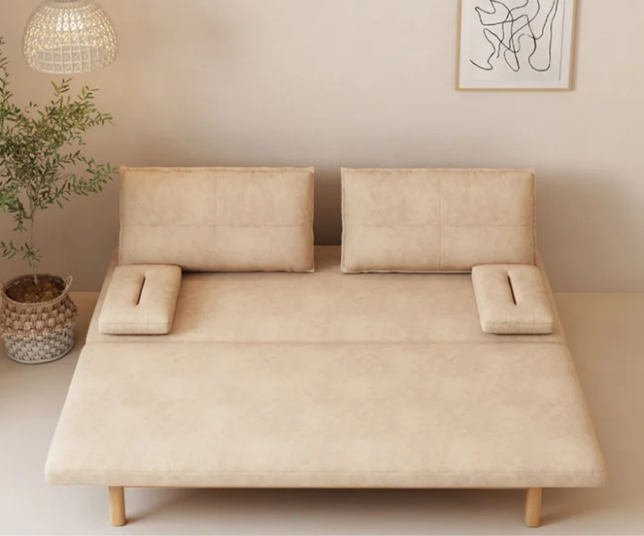 The Pullout Sofa Bed enhances your living room with its unique design that provides a very stylish and up-to-date look. The high-quality transformation mechanism technology offers comfort and ease of use. With cotton linen or leathaire upholstery, and solid wood frame, this sleeper sofa bed is comfortable and durable and will last for years.