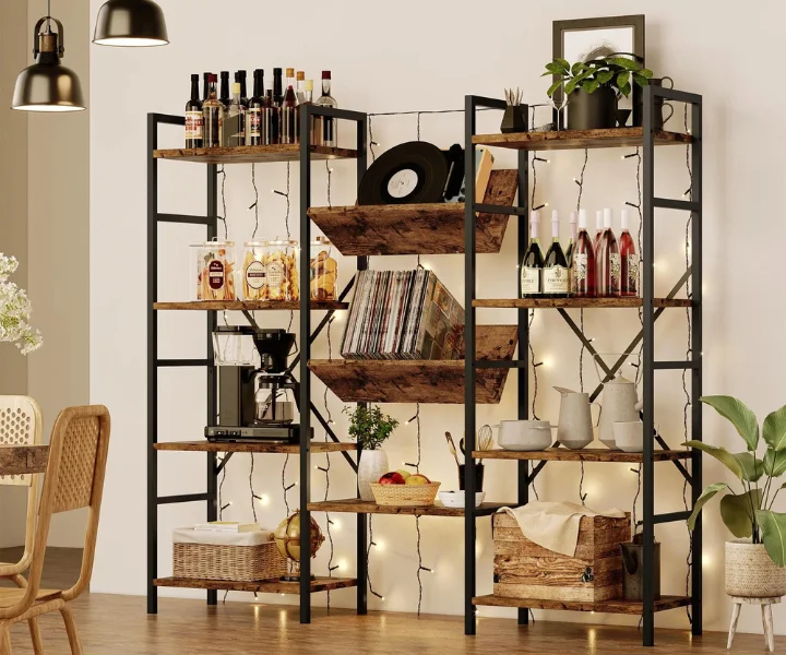 Multifunctional Bookshelf: This rustic bookcase can be used as a bookshelf in the study room, an open display rack of collections in your living room, or a storage shelf for spices in the kitchen. The modern open shelves are perfect for displaying or storing your favorite books, records, decorations, antiques, figurines, photo albums, crafts, potted plants, and more.