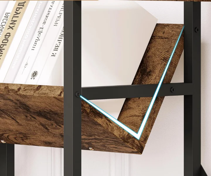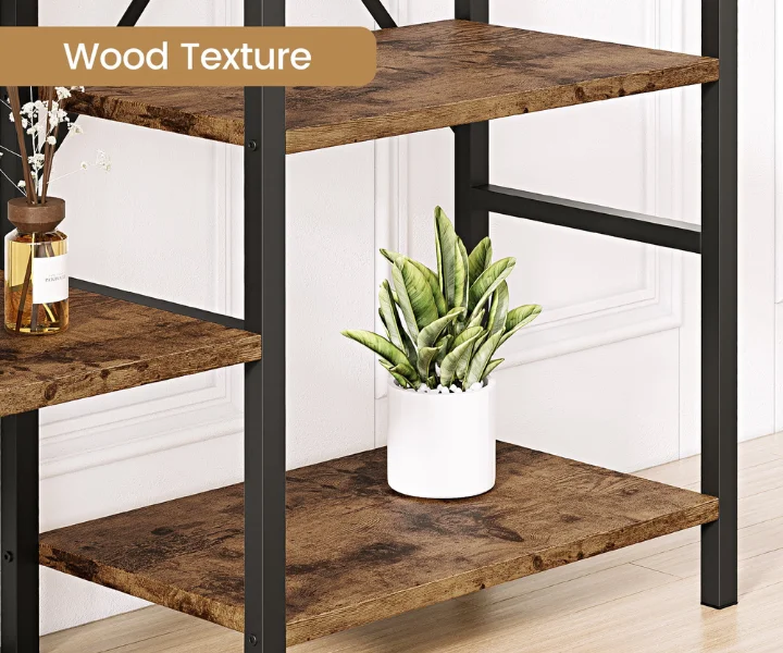 Retro & Industrial Style: The retro industrial style with natural wood texture combines a primitive and industrial aesthetic. With its sleek and modern design, this open bookshelf seamlessly blends into any room decor, whether it’s your living room, study, or office. Its versatility makes it suitable for various settings.