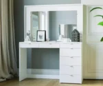 The Engineered Wood Dressing Table is a stunning piece of furniture designed to enhance the aesthetics of any bedroom. Made with premium quality engineered wood, this dressing table is a perfect combination of style and functionality. The beautiful finish gives it a contemporary look that is sure to catch the eye. The table comes with a large mirror and ample storage space, including a cabinet and drawers, which make it an ideal place to store all your cosmetics and accessories. The cabinet has a shelf that can be adjusted to your preference, making it a versatile addition to your room. The drawers have smooth sliders and provide ample storage space for all your essentials.