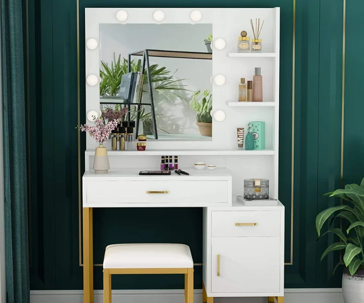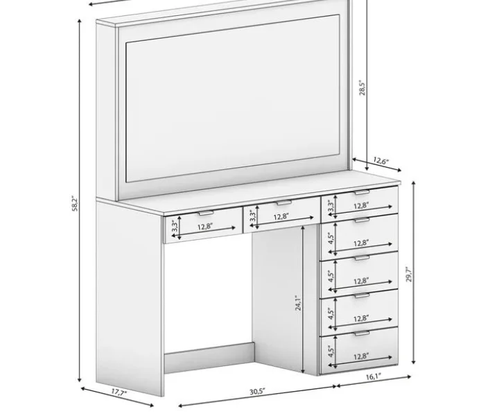 This dressing table has unique look. Material wise good & well finished. it is fits any space at my home easily.