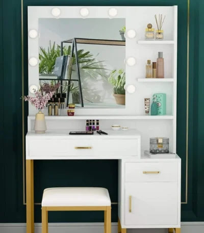 Dressing Table White Vanity Set with Lighted Mirror & Stool