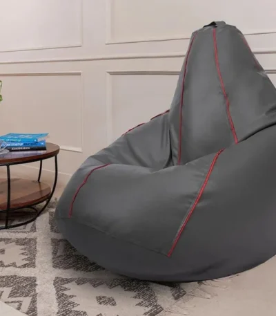 Bean Bag With Beans Original Leatherette Grey With Red Piping